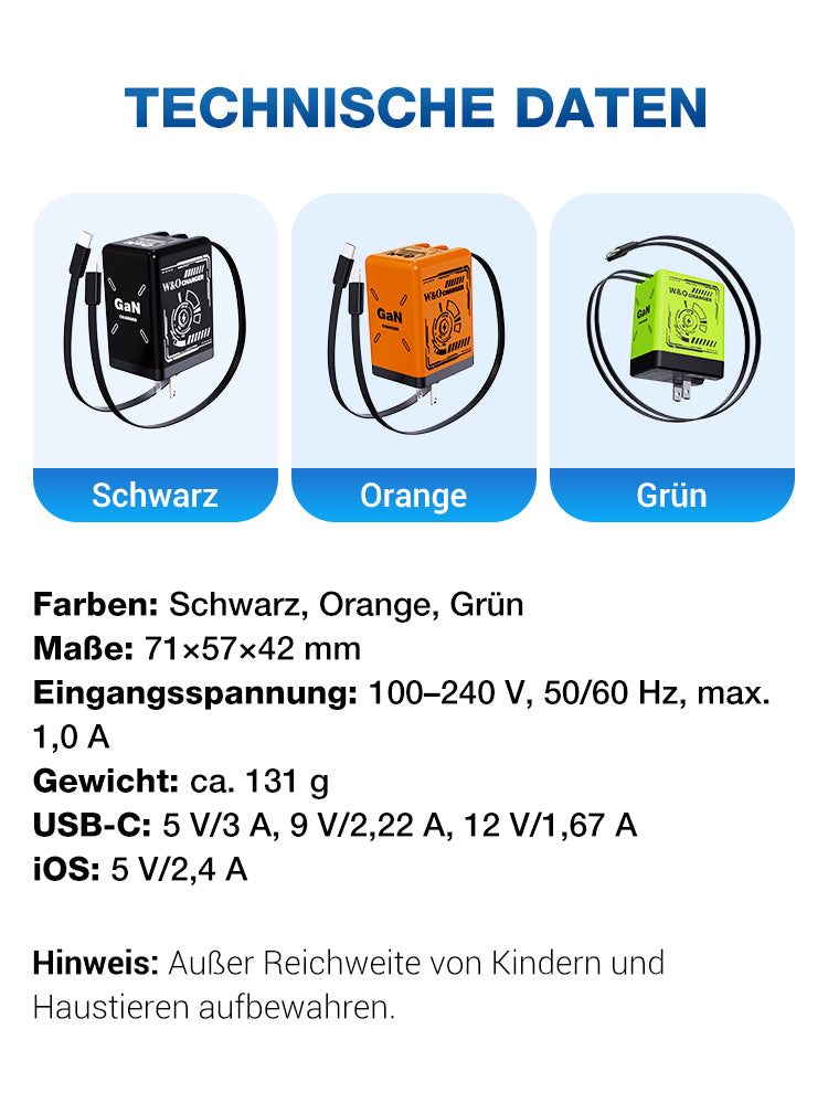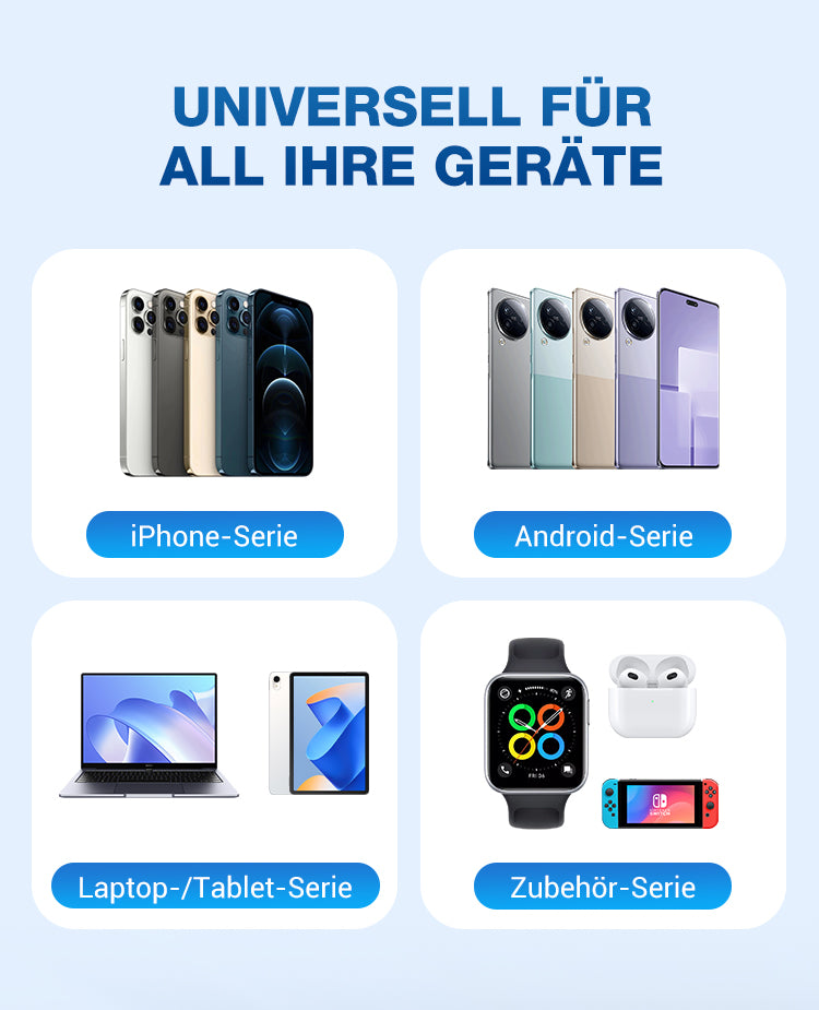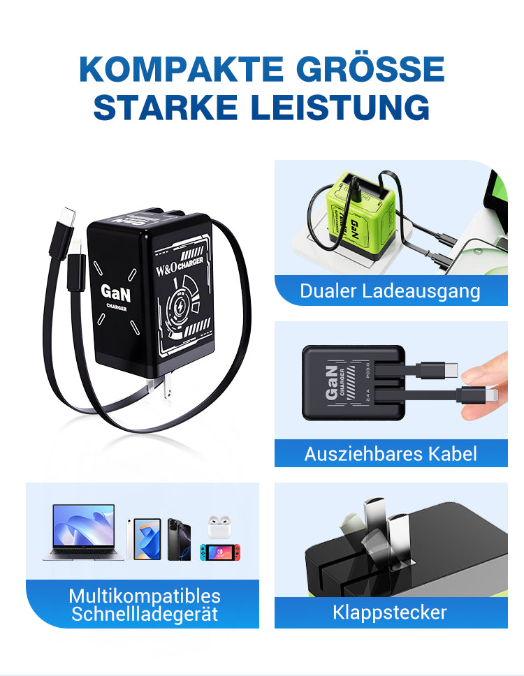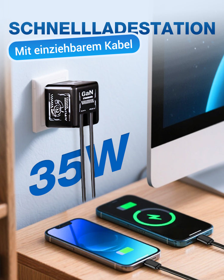 ✨Das neueste Modell von 2025 ⚡USB-C Schnellladestation mit einziehbarem Kabel – Universell einsetzbar