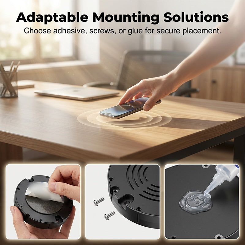 WIRKLICH DRAHTLOSES LADEN - Wird unter Ihrem Schreibtisch befestigt und verwandelt jede Oberfläche in eine Ladestation. So vermeiden Sie Kabelsalat und sorgen für einen aufgeräumten, minimalistischen Arbeitsplatz – ein nahtloses und nahtlos integriertes Ladeerlebnis ohne Bohren oder Beschädigungen.