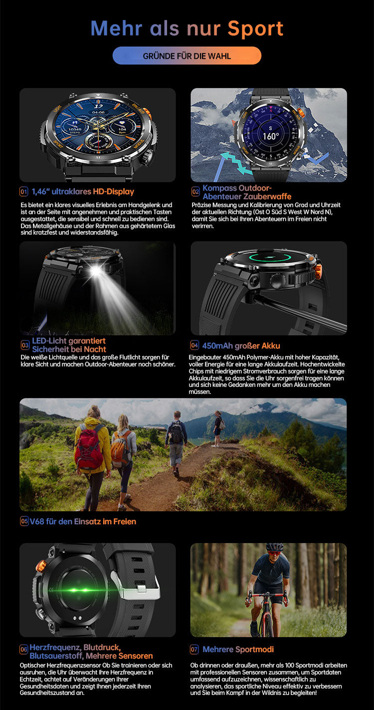 ⌚ 60% RABATT! 🏃 Wasserdichte Sport- & Outdoor-Smartwatch – GPS, Herzfrequenzmesser & Multisport-Modi 🌲