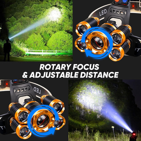 Super Bright 5x LED Rechargeable Waterproof Headlamp Kit – Adjustable Beam, 4 Modes, Camping & Survival
