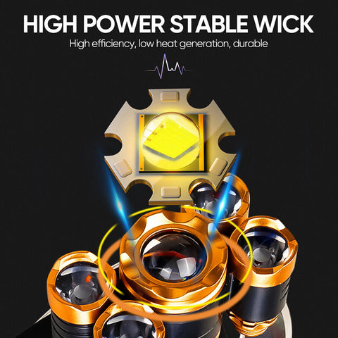 The MilitaryKart Super Bright 5x LED Waterproof Headlamp Kit is built for adventurers who refuse to be slowed down by the night. Featuring five powerful Cree XM-L T6 LEDs, this rechargeable headlamp lets you switch between one, two, or all five lights for tailored brightness.