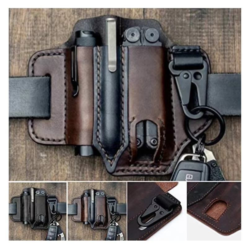 Genuine Leather Multitool Sheath – EDC Belt Pouch Holster for Knife, Flashlight & Tool