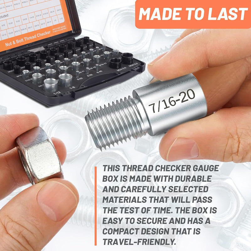 ROBUSTE KONSTRUKTION - Gefertigt aus gehärtetem Edelstahl für lebenslange Haltbarkeit. Das korrosionsbeständige Material widersteht Werkstattumgebungen, Öl und Fett und behält dabei die Messgenauigkeit bei. Im Gegensatz zu Lehren aus Kunststoff bricht oder verformt es sich nicht unter dem Druck bei Gewindeeingriffstests;
