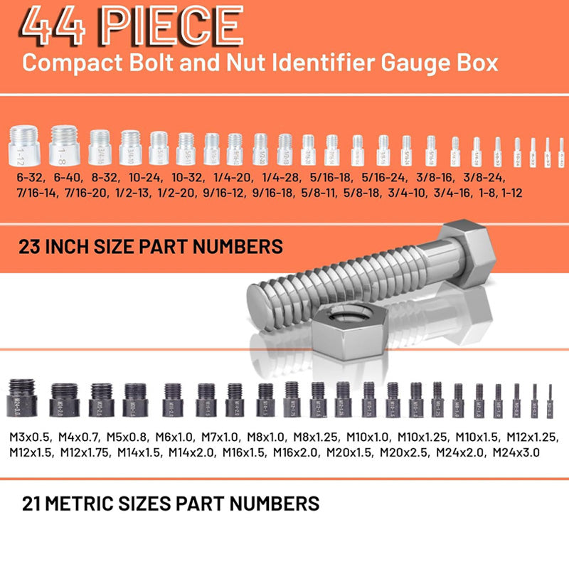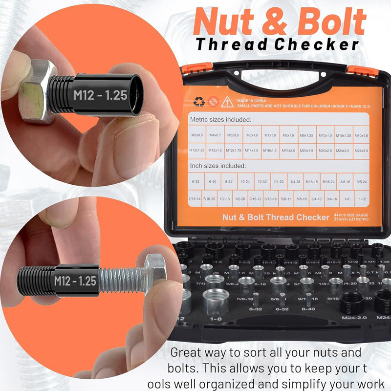 ⏰44-tlg. Legierungs-Gewindeprüfer – Für präzise Prüfung von Schrauben, Muttern & Gewindebohrungen – Metrisch & Zoll