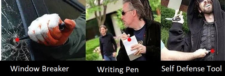 Its compact, lightweight design makes it easy to carry with you every day, whether clipped to your belt or stored in your pocket or bag. In addition to being a reliable glass breaker, the pen functions as a smooth writing instrument, perfect for daily tasks. The comfortable grip ensures ease of use, whether you're writing or using it for self-defense.