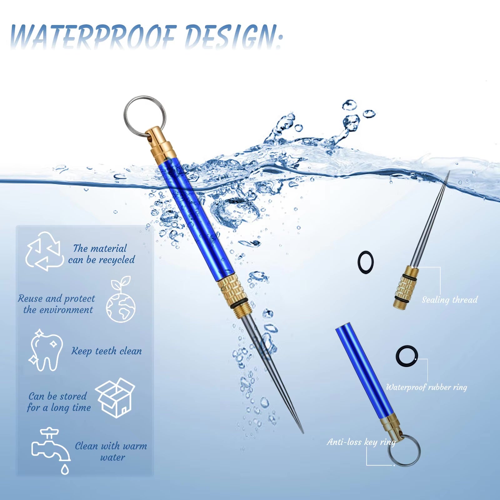 Eco-Conscious Innovation: Say goodbye to disposable wooden or plastic toothpicks! This reusable alternative is not only durable but also features an O-ring that ensures the toothpick stays airtight, waterproof, and clean, making it an eco-friendly choice.