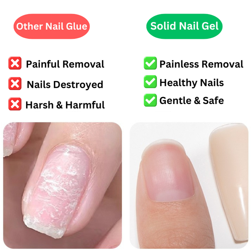 MESS-FREE SOLID GEL – Der Klebstoff bleibt in einem halbfesten Zustand, sodass er sich leicht entnehmen und präzise auftragen lässt. Er klebt nicht an den Fingern oder Werkzeugen und tropft nicht, was ein saubereres Arbeiten und eine bessere Kontrolle ermöglicht. Egal, ob Sie Anfänger oder Profi sind, diese Textur macht die Nagelvorbereitung schneller, einfacher und weniger chaotisch.