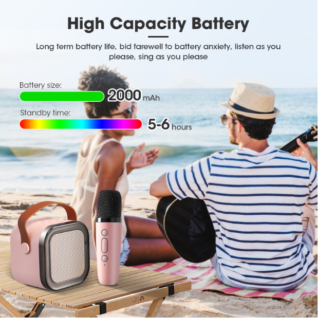 LONGER HAPPY TIME - This Karaoke Machine has a built-in internal 2000 mAh rechargeable battery that ensures 5-6 hours of playtime. Ideal for birthday parties, meetings, classes, outdoor activities and more!