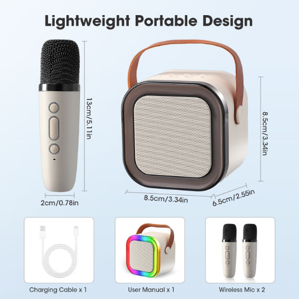 1×Mini Karaoke Machine for Kids with Wireless Microphones