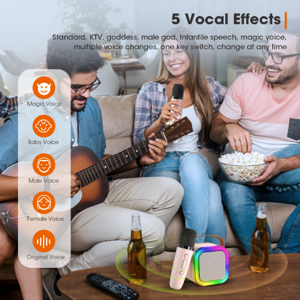 Are you still thinking about entertainment at party? Karaoke machine for kids has powerful and clear sound, our speakers will provide you with deep bass and crisp treble, speakers with strong stereo effect. Individually control the volume of your karaoke machine and wireless microphone to experience superior sound quality and take your party to the next level with this captivating visual experience.