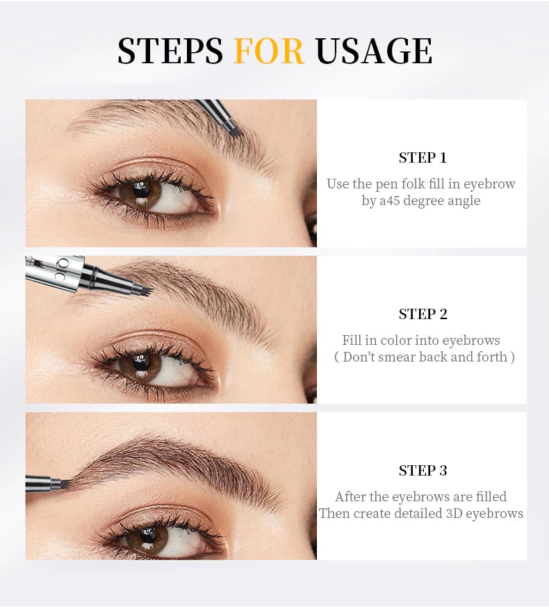 Zeichnen Sie bequem und präzise Haare. Das 4-armige 3D-Gabeldesign sorgt im Handumdrehen für einen super natürlichen Effekt auf Ihren Augenbrauen.