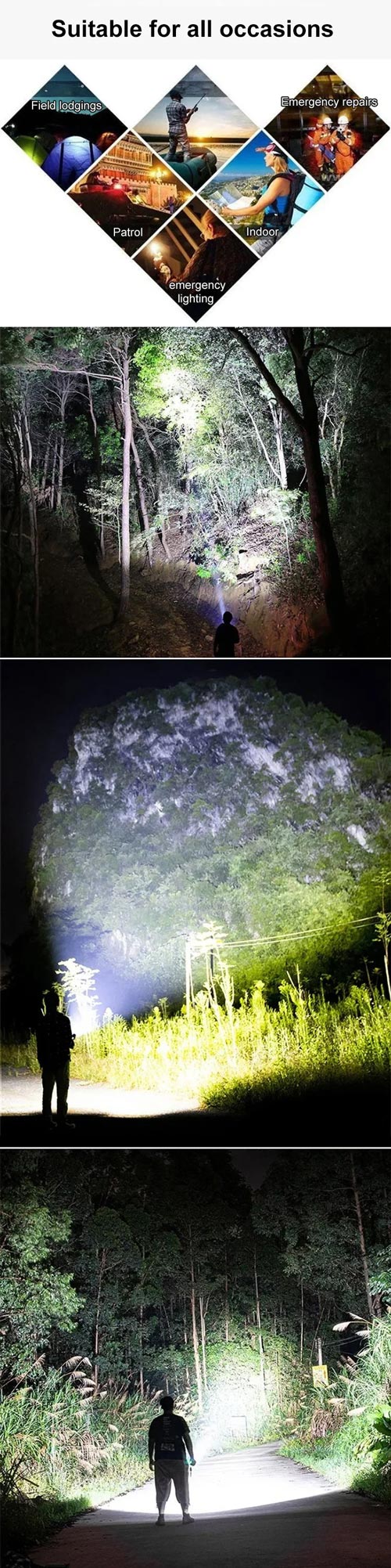 Eine kompakte und tragbare Taschenlampe kann eine hohe Helligkeit von 7.500 Lumen ausstrahlen und bis zu 4.900 Meter weit leuchten. Ob beim Camping, Wandern, Radfahren, Angeln oder auf Entdeckungsreise, unsere Taschenlampe wird Ihnen den Weg erhellen.